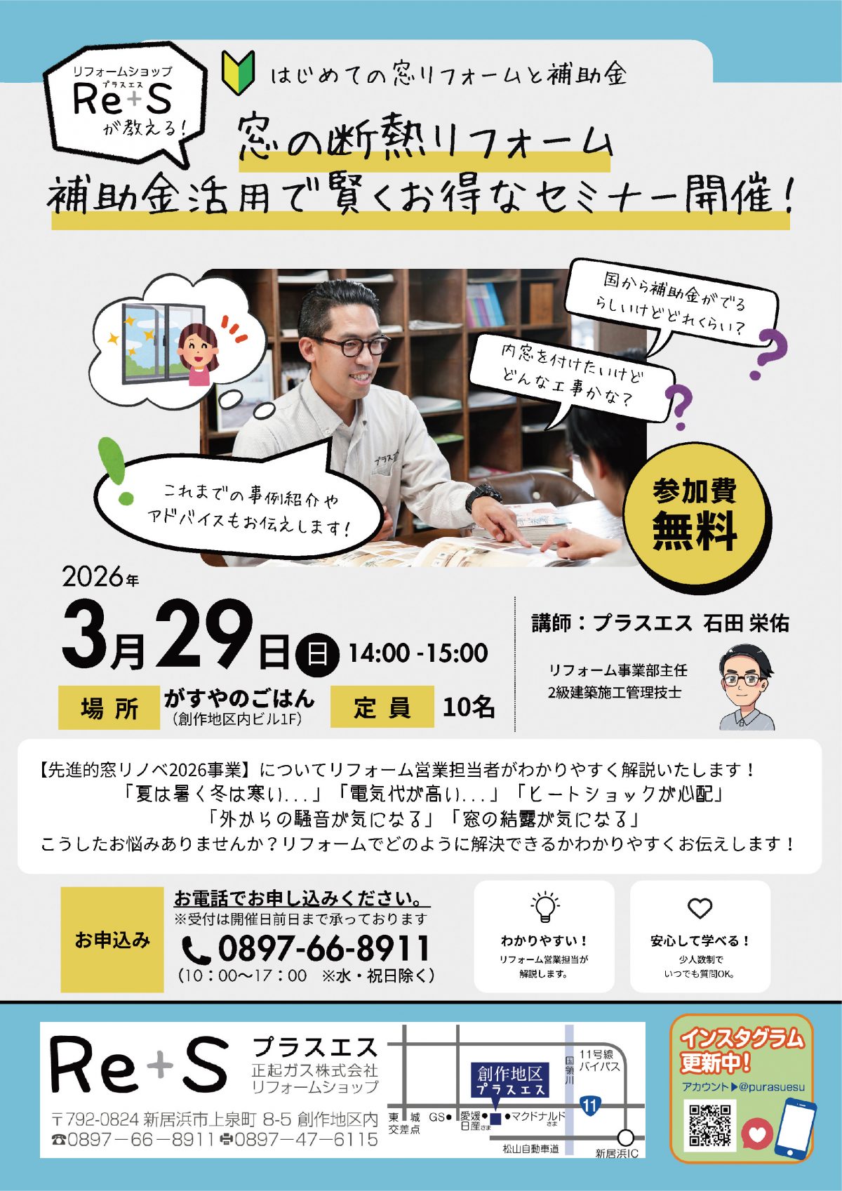 🏠「窓の断熱リフォーム&補助金」セミナー開催 ❕