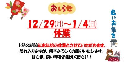 年末年始休業日のおしらせ