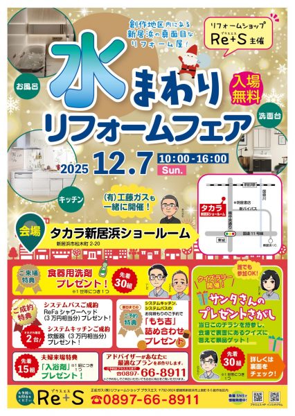 12月7日(日) タカラ新居浜ショールームで「水まわりリフォームフェア」開催!!