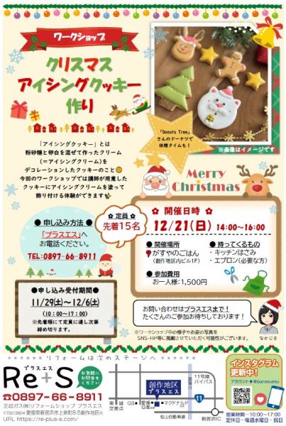 ワークショップ「クリスマスアイシングクッキー作り」開催のお知らせ🎅